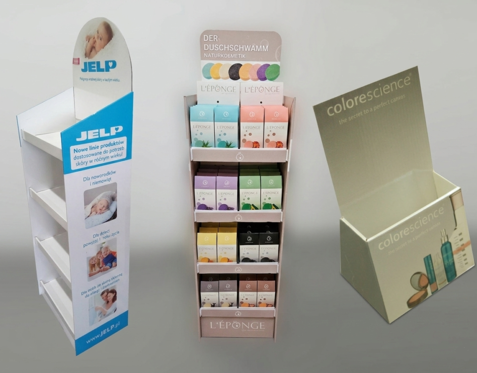 Wbrew pozorom, tekturowe standy reklamowe charakteryzują się zaskakującą trwałością. Choć są wykonane z kartonu, odpowiednio zaprojektowane i wykonane konstrukcje mogą stać w sklepach przez miesiące, a nawet lata. Kluczowe znaczenie ma materiał, z którego są wykonane, oraz sposób ich wykończenia. Laminowanie tekturowych standów zwiększa ich trwałość i odporność na uszkodzenia mechaniczne oraz działanie czynników zewnętrznych, takich jak wilgoć czy zabrudzenia. Zabezpieczony laminatem karton staje się bardziej odporny na zarysowania i wilgoć, co sprawia, że standy mogą wyglądać estetycznie przez dłuższy czas. Dodatkowo można zastosować tackę „antymop” z przezroczystego PET 0,3-0,4 mm. Taca taka, w którą wstawia się display, zabezpiecza dodatkowo spód stojaka zabezpieczając go przed wchłanianiem wilgoci powstałej w wyniku mycia podłogi.